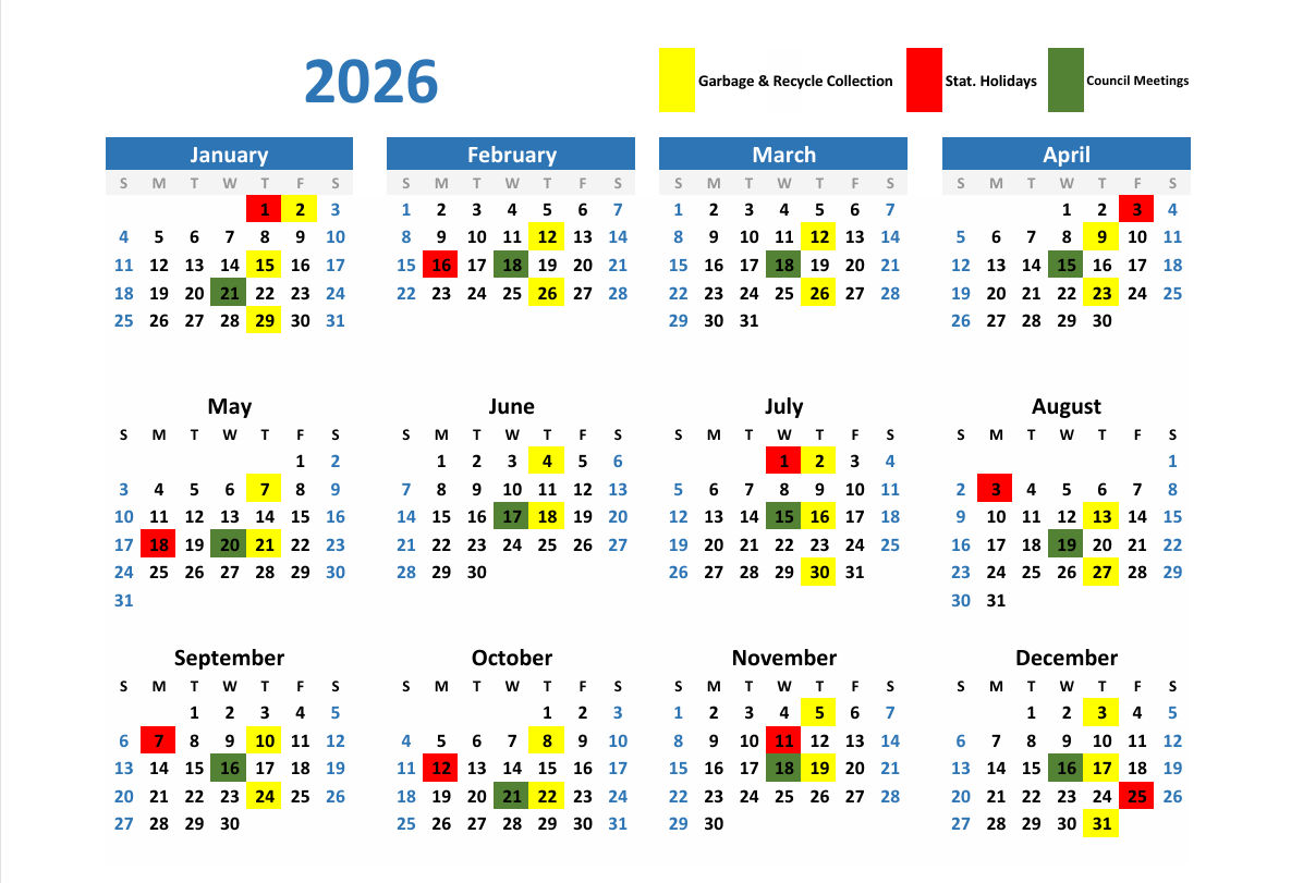 Please have your Blue Box at your garbage stand on the morning of pickup. Cardboard can still be placed in the bins located north of the Car Wash.